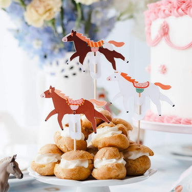 Tämä heppa-aiheinen synttäriteema vie lapset suoraan tallin tunnelmaan ja ratsastuksen riemuun.