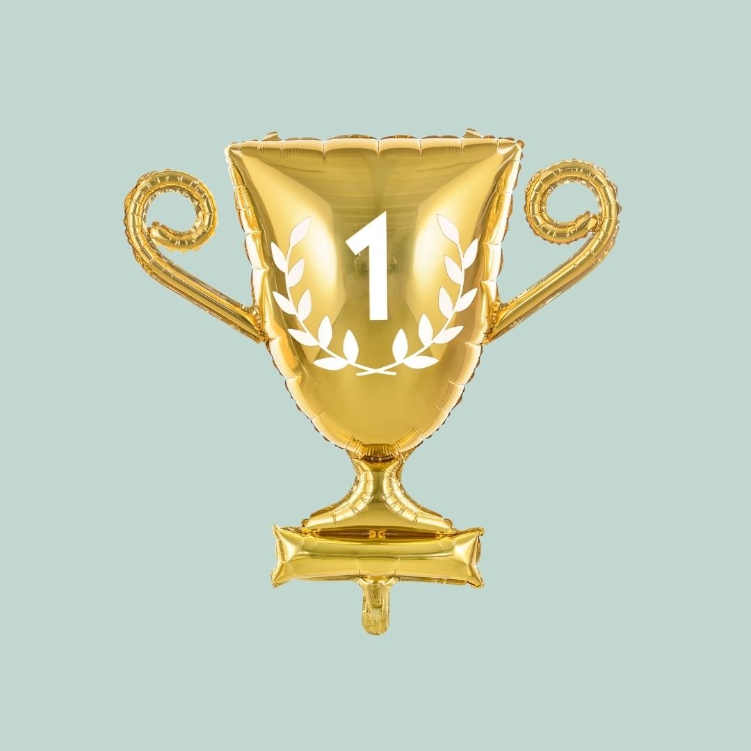 Näyttävä pokaalinmuotoinen foliopallo kruunaa juhlan mestarillisesti!