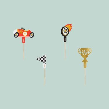 Anna vauhtia juhlapöytään näillä hauskoilla ralliautoteemaisilla kuppikakkukoristeilla! Sopii myös kakun koristeeksi.