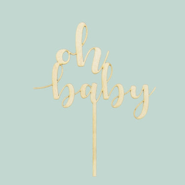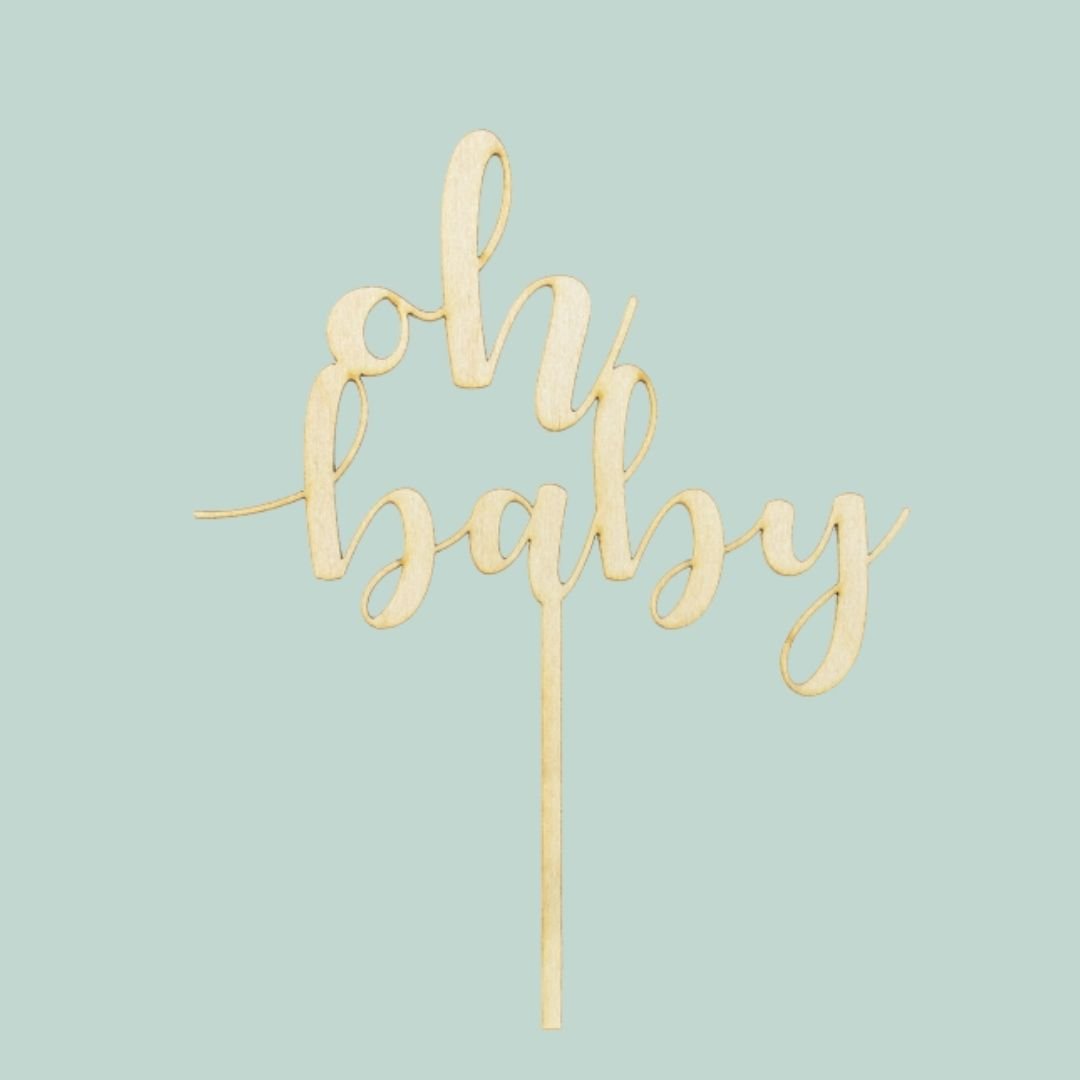 Puinen kakkukoriste "Oh baby" tekstillä – 13,5 × 17 cm