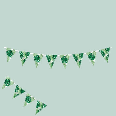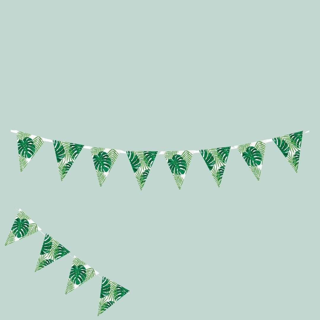 Viirinauha vihreät lehdet, 1,3 mTrooppinen lippuviiri, joissa vihreitä lehtiä. Paketissa on yhteensä 8 kpl lippua.