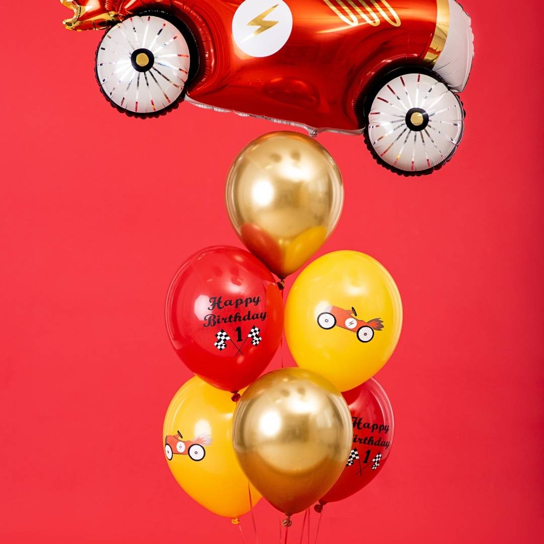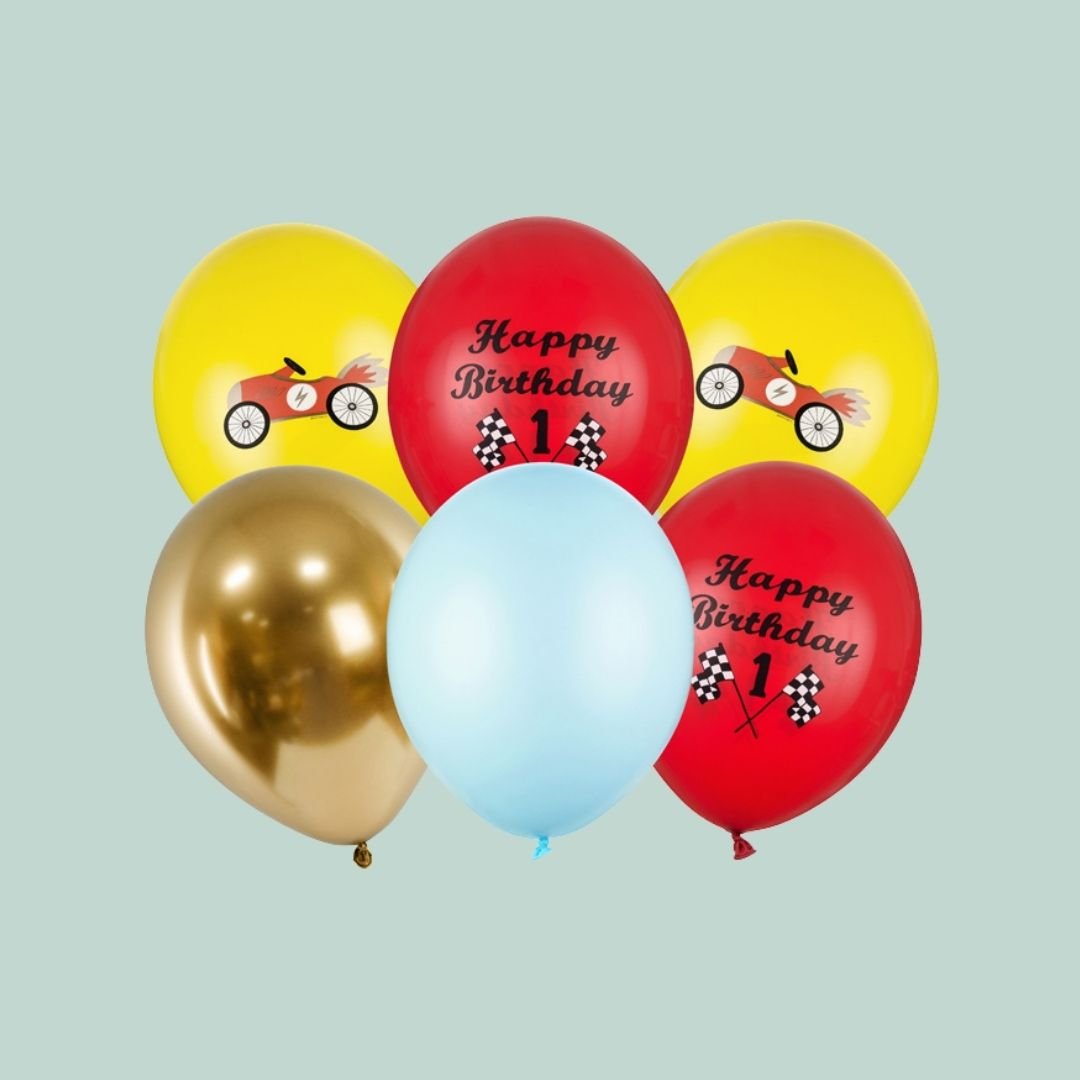 Ralliautoteeman ilmapallot Happy Birthday, 30 cm, 6 kpl