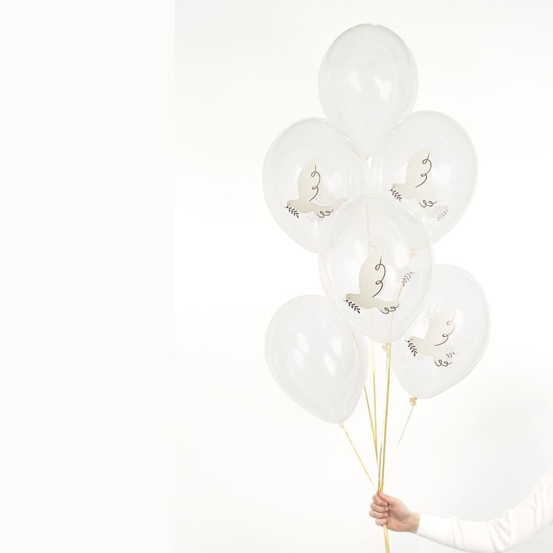 Tämä kaunis ja symbolinen ilmapallosetti sisältää kyyhkysen kuvalla painettuja kristallinkirkkaita ilmapalloja, jotka sopivat täydellisesti ristiäisiin, konfirmaatioon, muistotilaisuuksiin tai muihin rauhallisiin ja arvokkaisiin juhlahetkiin.