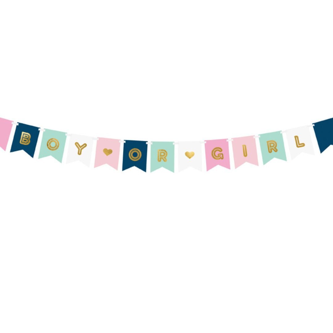 Korista juhlatila näyttävästi tällä suloisella Boy or Girl -bannerilla, joka on täydellinen valinta sukupuolenpaljastusjuhliin ja baby showereihin. Bannerissa yhdistyvät pastellisävyt ja kultainen tekstipainatus, jotka tuovat esille juhlan herkkyyden ja arvokkuuden.