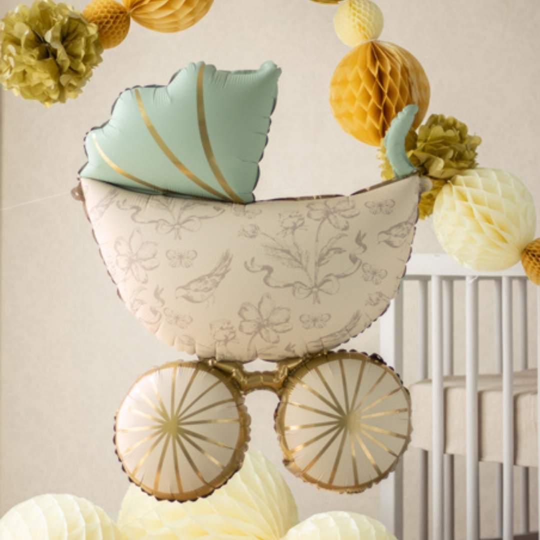 Suloinen vauvavaunun muotoinen foliopallo on ihastuttava yksityiskohta, joka täydentää juhlatunnelman baby showereissa, sukupuolenpaljastusjuhlissa, ristiäisissä ja nimenantojuhlissa. Pehmeä värimaailma ja leikkisä muotoilu tekevät siitä täydellisen koristeen moneen tunnelmaan.
