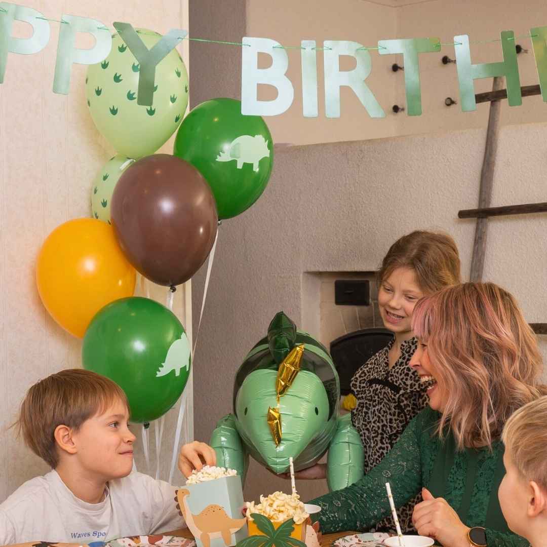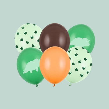 Dinosaurusteemaiset ilmapallot tuovat hauskan lisän lasten juhliin ja syntymäpäiväkoristeluun. Setissä on kuusi pastellisävyistä palloa dino-painatuksilla – raikkaat vihreän, oranssin ja ruskean sävyt sopivat täydellisesti teemajuhliin.