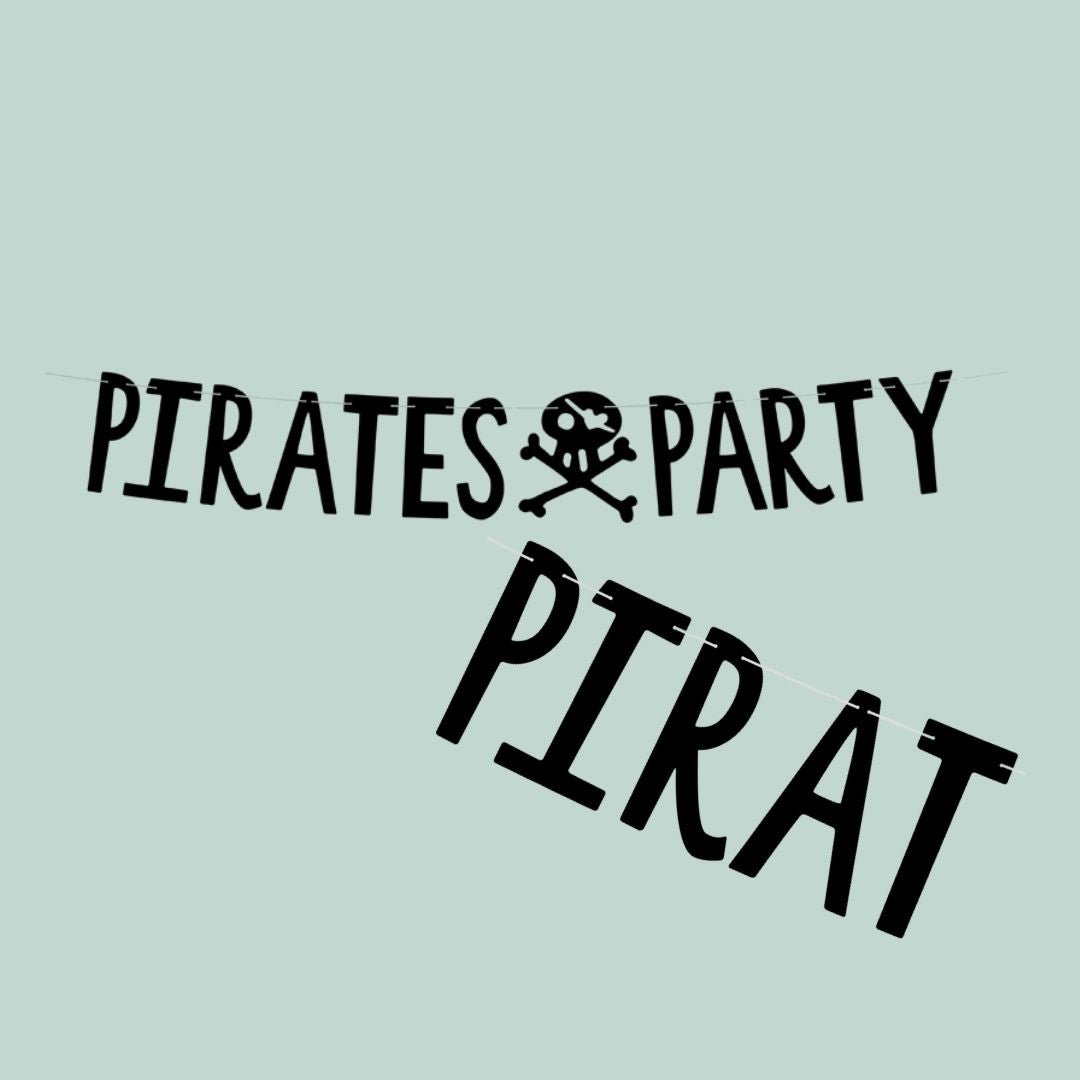 Tyylikäs merirosvoteemainen banneri on täydellinen koriste merirosvojuhliin! Mustista paperikirjaimista koostuva banneri on helppo koota ja ripustaa mukana tulevan mustavalkoisen narun avulla.