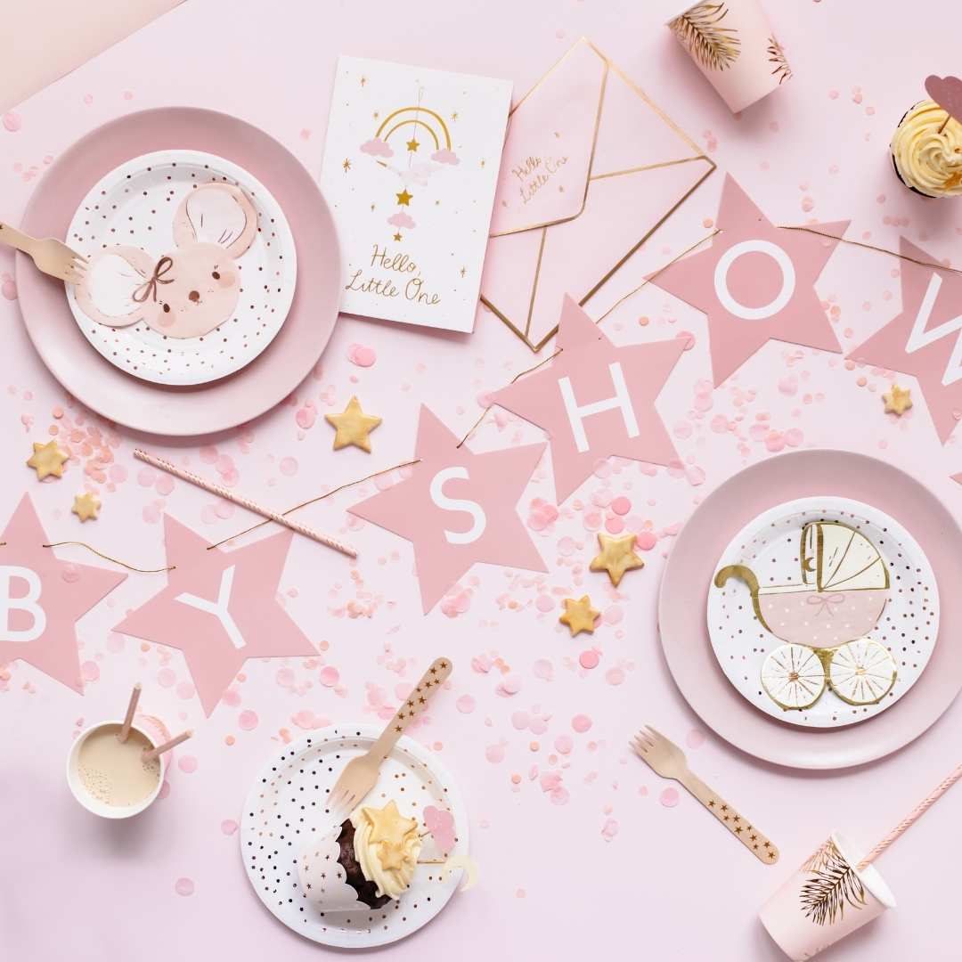 Kaunis Baby Shower -viriinauha tähtikuviolla viimeistelee vauvajuhlien koristelun ihanan pehmeällä ilmeellä. Vaaleanpunainen värimaailma sopii täydellisesti baby showereihin, nimiäisiin ja kaikkiin juhliin, joissa halutaan luoda lämmin ja juhlava tunnelma.